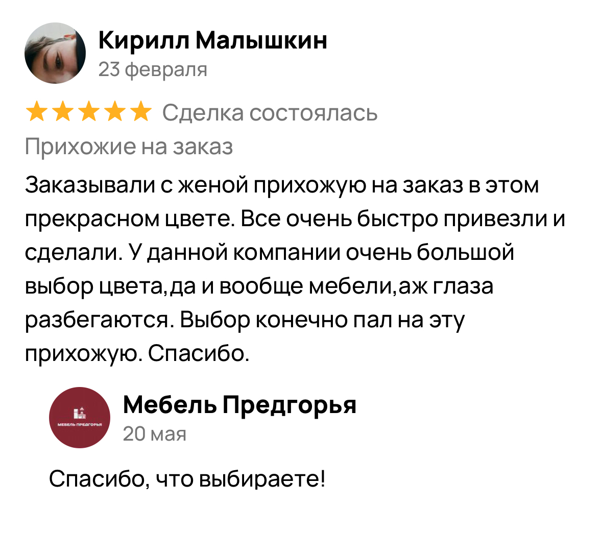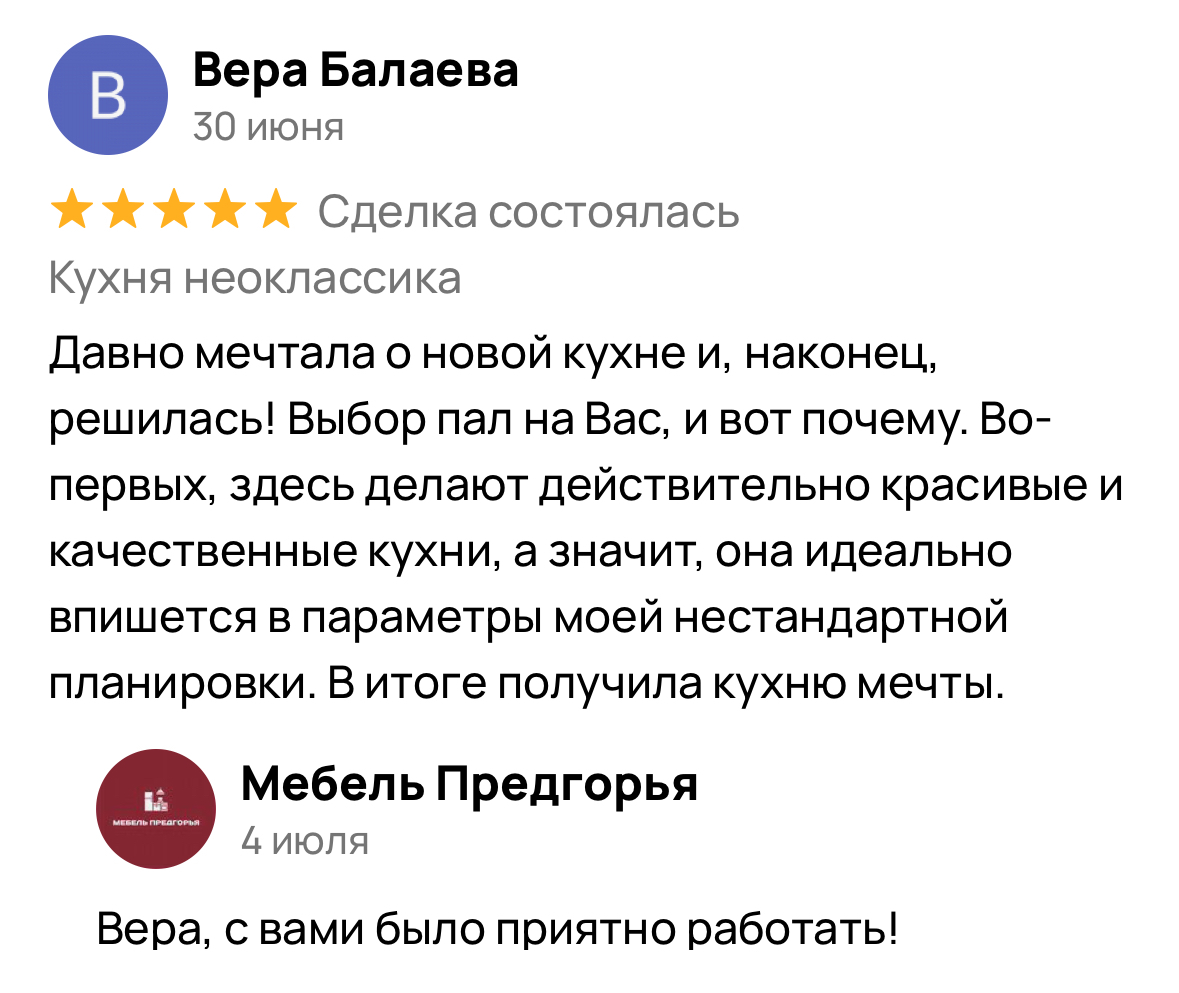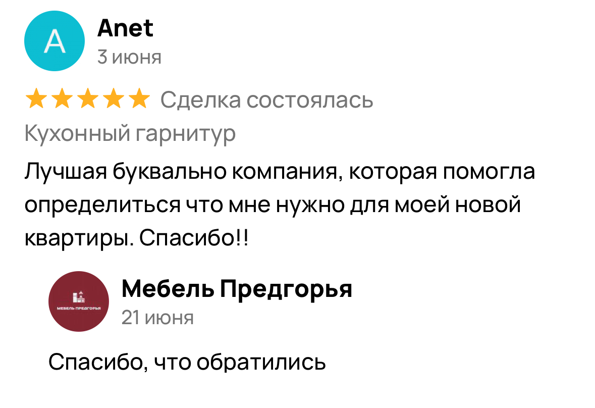 • отсутствия шоурумов: мы работаем в выездном формате с производства. Наш замерщик бесплатно выезжает к вам на адрес в любую точку региона со всеми образцами. А значит в стоимость кухни не заложена аренда салона, зарплата менеджеров и дизайнеров.